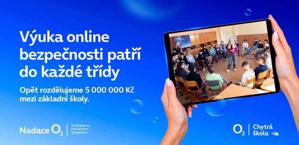 Nadace O2 vyhlašuje sedmý ročník grantového programu O2 Chytrá škola, jehož cílem je podpořit vzdělávání na základních školách v oblasti digitální bezpečnosti a zdravého pohybu v online prostoru. „Právě školy hrají v rozvoji digitálních kompetencí klíčovou roli, proto v Nadaci O2 dlouhodobě podporujeme jejich vzdělávací aktivity prostřednictvím programu O2 Chytrá škola. A už tradičně spouštíme pro základní školy další ročník našeho grantového programu. Pomáháme tak rozvíjet potřebné kompetence a získávat praktické nástroje pro výuku i život v online světě,“ říká Dominika Herdová, ředitelka Nadace O2.